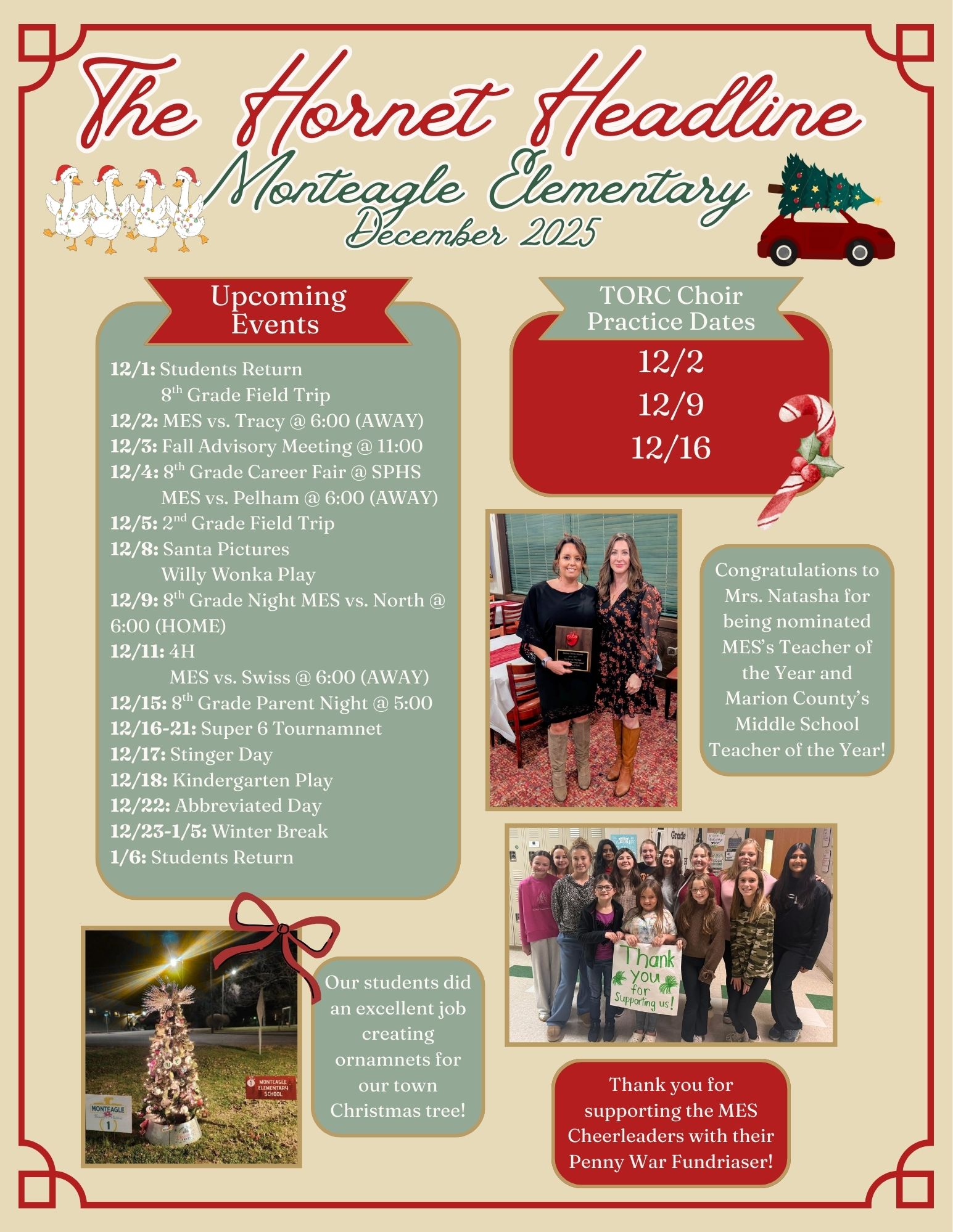 Not only was Mrs. Natasha Monteagle Elementary's Teacher of the Year, but she was also nominated as Marion County's Middle School Teacher of the Year! A huge shout-out and thank you to all of the incredible teachers nominated for their hard work, as well as to the board members and Dr. Griffith! Finally, we extend our gratitude to SVEC for their generous sponsorship of this year's banquet.